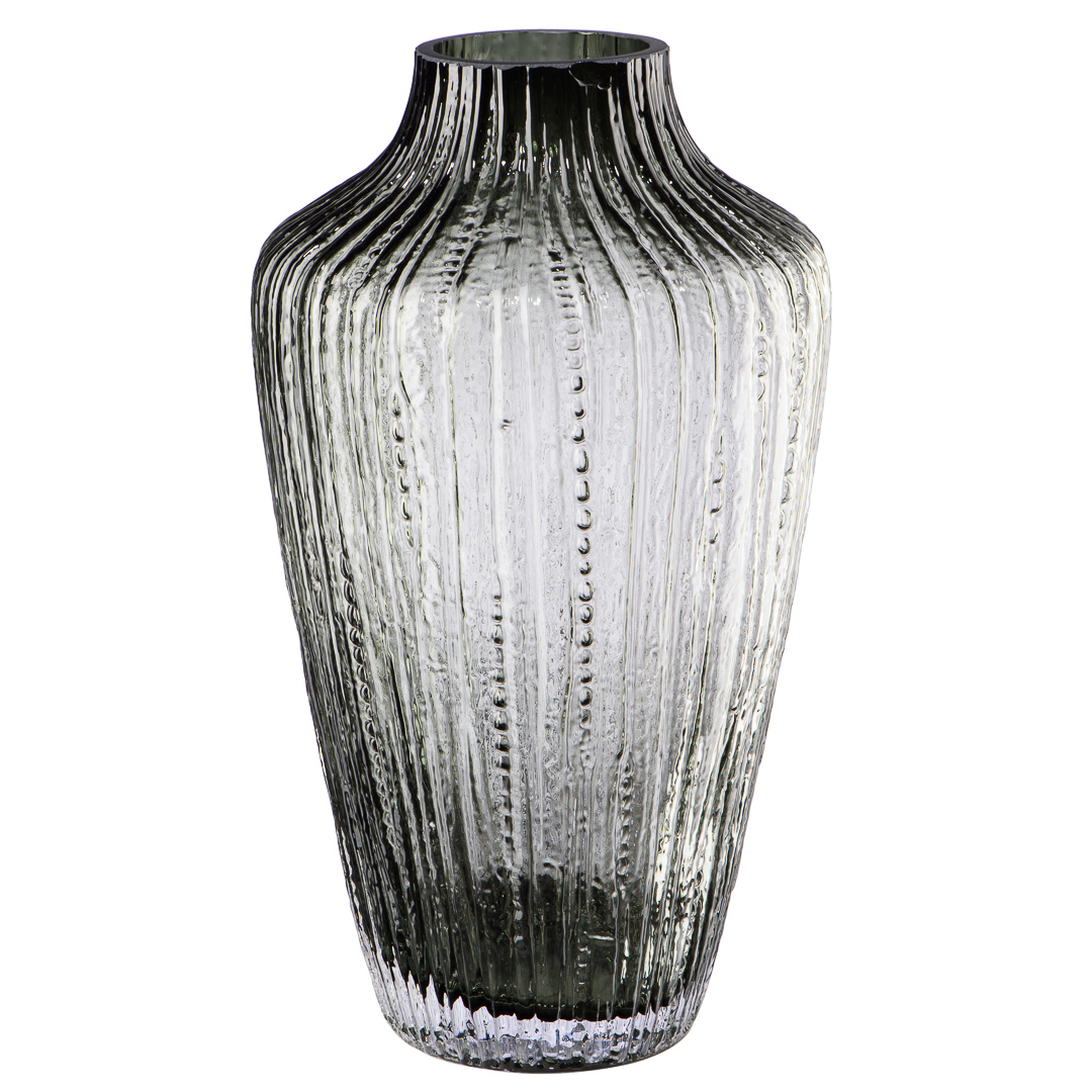 Красивая стеклянная ваза необычной фактуры украсит монохромные интерьеры, станет эксклюзивной деталью в классических пространствах. Вазу можно использовать как самостоятельный предмет декора, а также наполнить живыми цветами. Роскошно в таком сосуде смотрятся композиции из сухоцветов и искусственных растений. Неровная поверхность напоминает серебристую рябь на воде, изменчивую и в то же время постоянную субстанцию. Ваза идеально покажет себя в фотостудиях и на ресепшн салонов, в роскошных гостиных и небольших стильных пространствах.